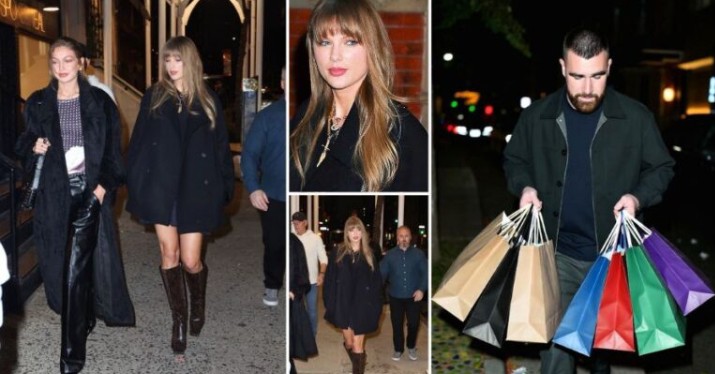 Breaking News: Taylor Swift Unintentionally Channels Her 2013 “Red” Era Look as She and BFF Gigi Hadid Are Spotted Last Night in NYC — Fiancé Travis Kelce Also Seen Carrying a Bunch of Bags from Taylor and Gigi’s Shopping Spree, Leaving Fans Shocked: “How Can a Grown Man Be Carrying Bags for Women?!” — See Full Details and More Photos